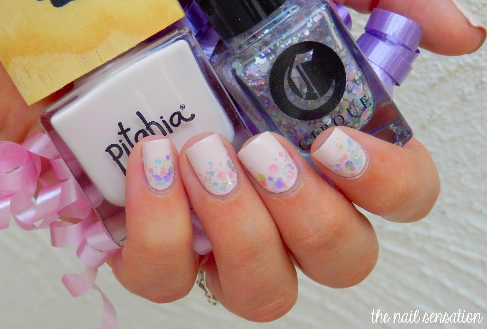 Petal pusher: Mi favorito de los cuatro! Al principio no entendia muy bien la combinación porque en la botella no se aprecian los glitters morados, pero una vez aplicado salen en la brocha y wow! Me encantó. 3 capas, sin undies, una capa de top coat.